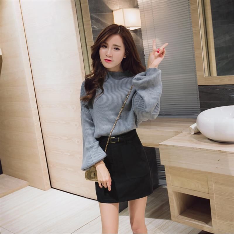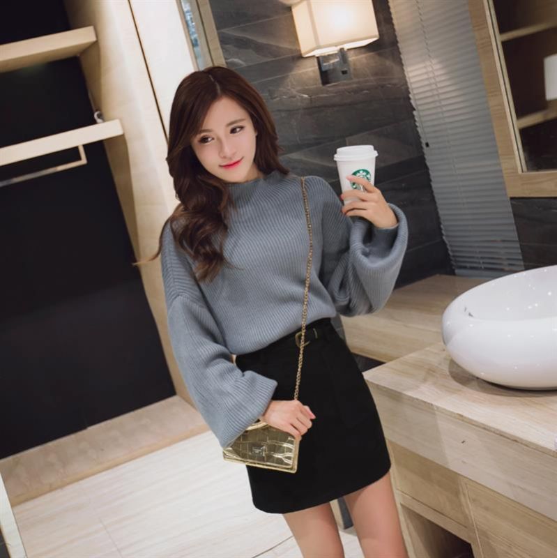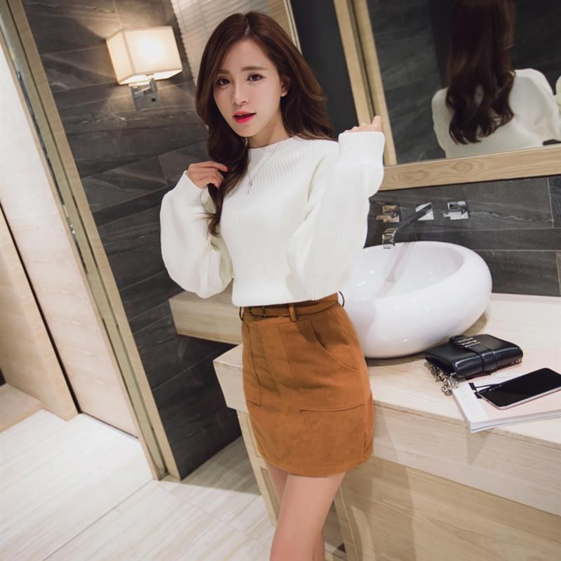 颜色分类:浅灰毛衣卡其裙子,白色毛衣黑色裙子,白色,浅灰色