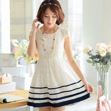 • 商品名称:高端2015夏装新款修身淑坊女女装蕾丝短袖复女连衣裙装